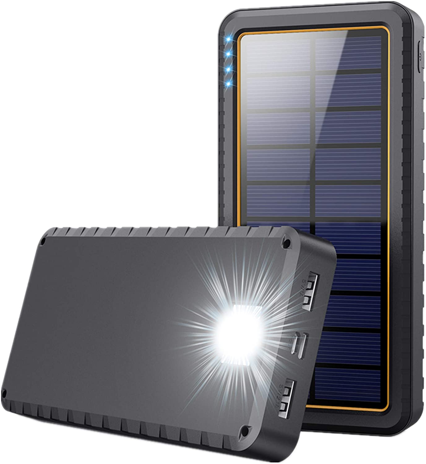 Solar Charger, 26800mAh Power Bank Portable Panel Charger with 2 USB Outputs, Type C Input, LED Flashlight, Shockproof, External Battery Pack Cellphone Backup for Apple iPhone, Samsung Galaxy Android,Tablet, Camping, Outdoor.