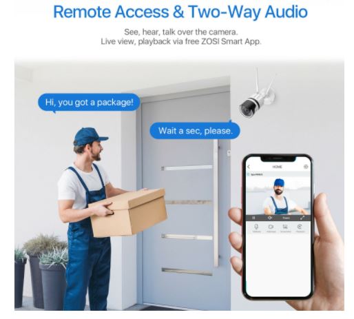 You can check on everything you hold dear from afar, no matter you’re in your office or on a long trip. Get remote access via free ZOSI Smart App on your ios and Android mobile devices or via free AVSS Client on your computer. Not only can you watch live stream of your home or business, this WiFi camera featuring powerful speaker and microphone with noise cancellation and echo suppression allows you to listen and talk to your families, staff or even the unwanted. Get fully involved in even when you are not there.